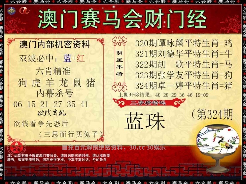 325期:曾道人网 【平特一尾】 已公开